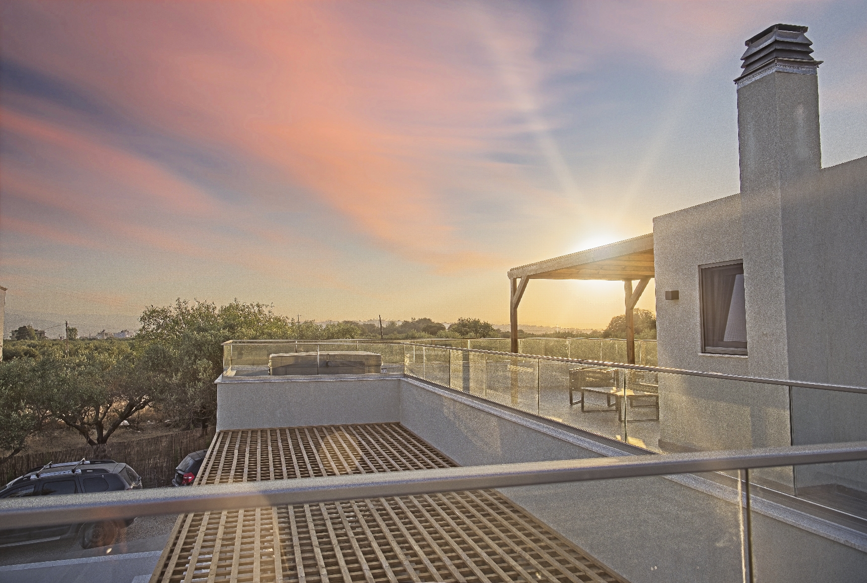 Surrounded by peaceful scenery, the space is enhanced with soft ambient lighting, creating a magical atmosphere for romantic evenings or quiet moments under the stars. Whether enjoying a glass of wine or simply embracing the stillness, the villa’s jacuzzi promises a truly soothing wellness experience.